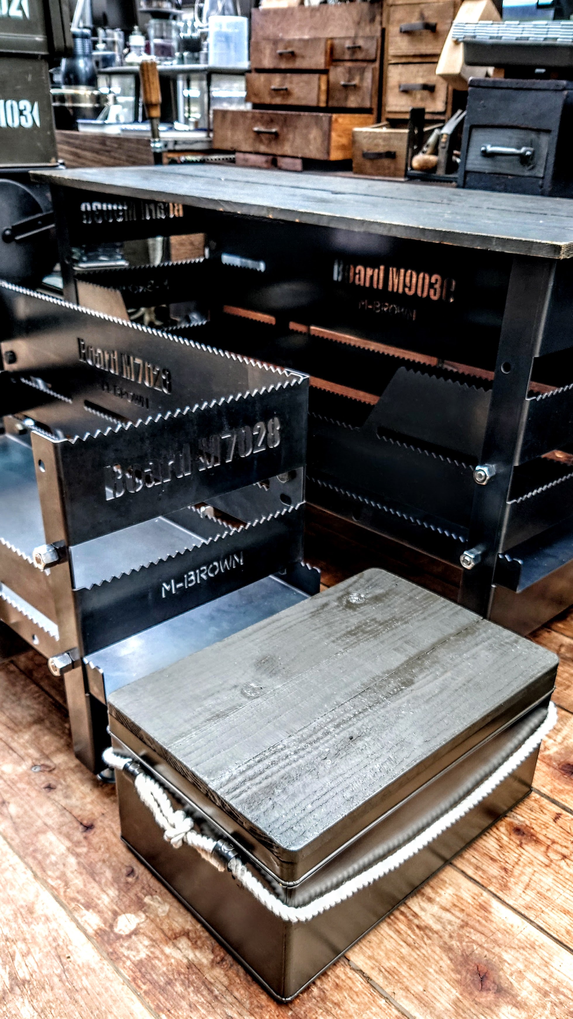 ボトムボードサイドに灰入れ缶を引掛けファイヤースクラッパーで押込みサクッと完了です。